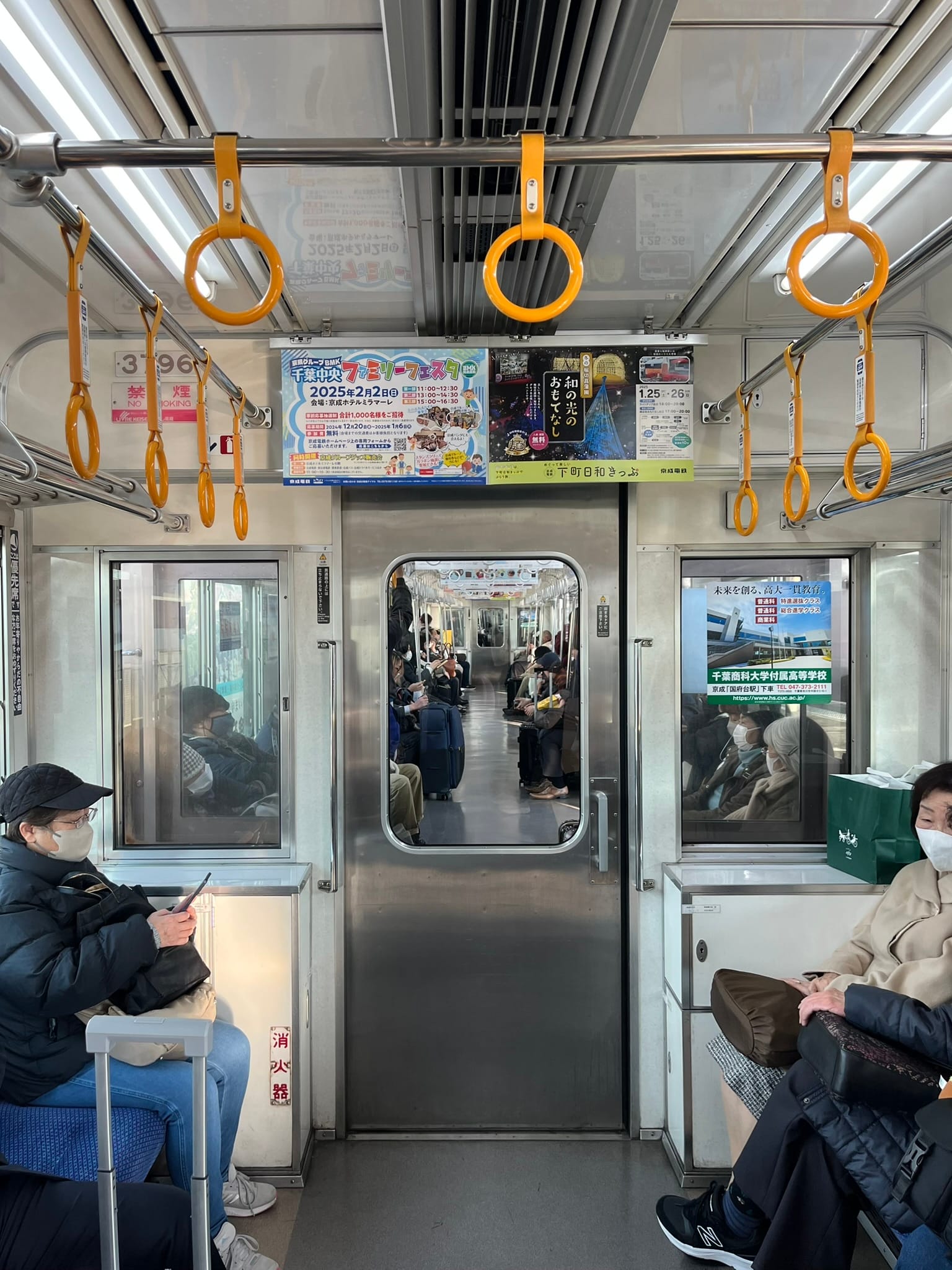 You could almost hear a mouse squeak, how quiet it was. This is a distinctly Japanese thing, to not speak loudly or do anything rowdy on the subway and rail lines. It's considered rude and inconsiderate to other passengers.